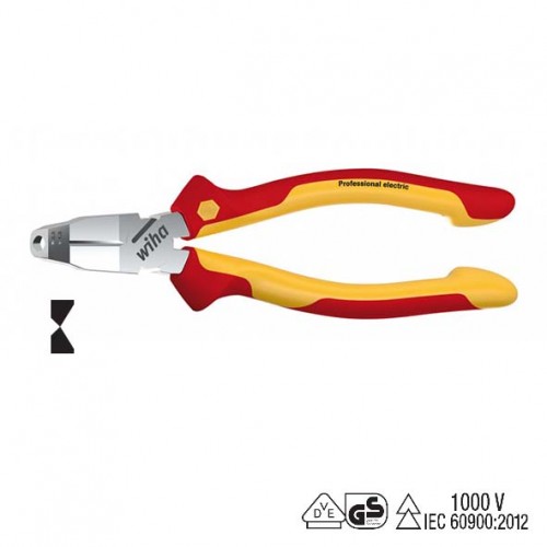 • Wiha Professional Electric TriCut Installation Pliers - Individually Tested Protective Insulation 1,000 V AC, VDE and GS Tested - 170 mm - 38552